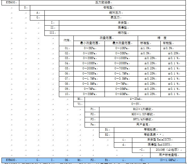 KYB600系列產(chǎn)品選用著名品牌高精度、高穩(wěn)定性的傳感器,通過成熟精湛的封裝工藝完美結(jié)合裝配,經(jīng)過高可靠性的后端放大處理電路,將被測介質(zhì)的壓力轉(zhuǎn)換成標(biāo)準(zhǔn)電信號輸出。